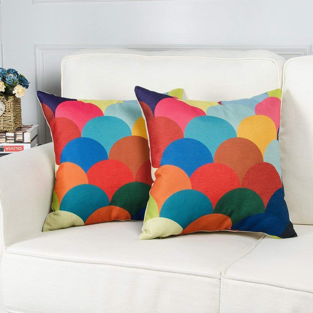 Topfinel 2pcs Copricuscini Per Divani Cotone Lino Federe Cuscini Letto Auto 50x50 Cm Squama2 Amazon It Casa E Cucina