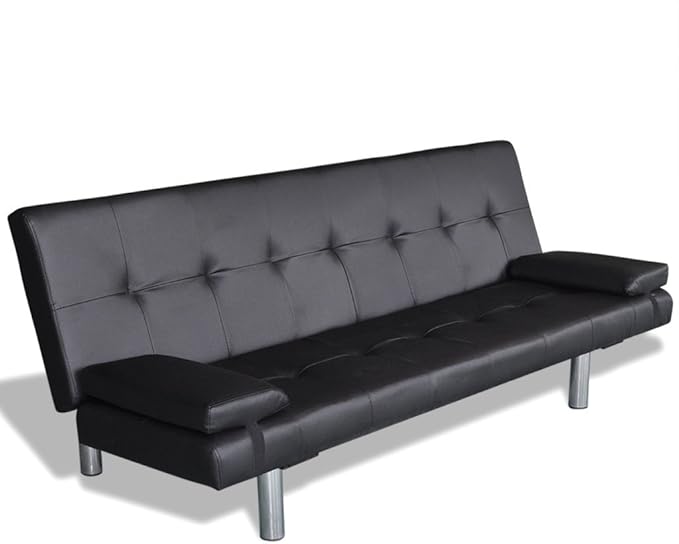 Vidaxl Divano Letto Con 2 Cuscini In Pelle Artificiale Regolabile Nero Eprice