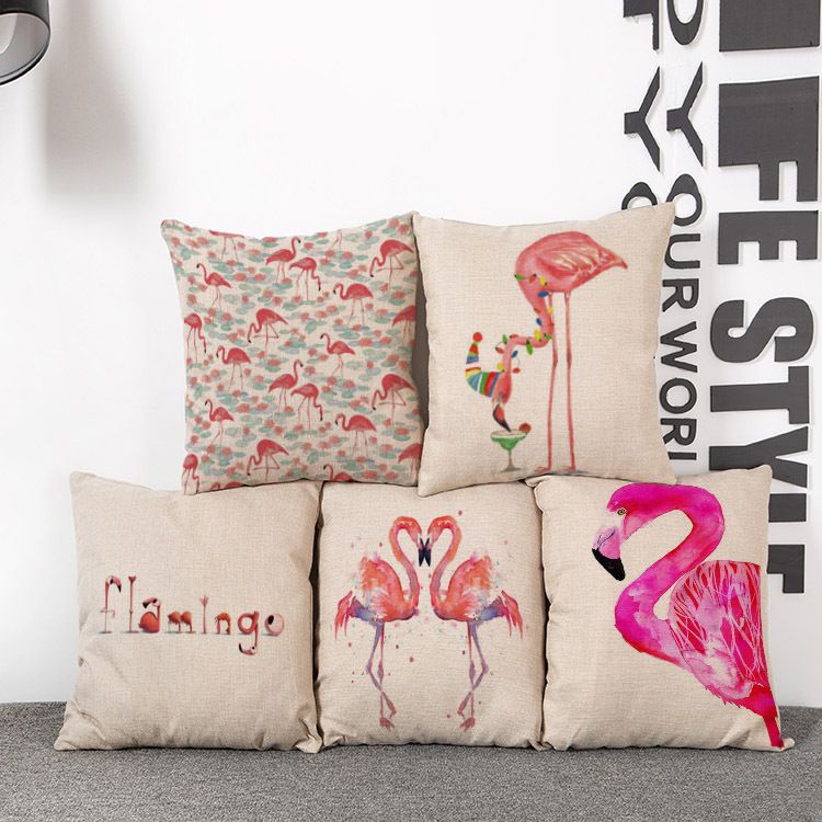 Acquista Copricuscino Divano In Lino Nordico Creativo Copricuscino Rosa Fenicottero Acquerello A 7 55 Dal Tingtingwaimao Dhgate Com