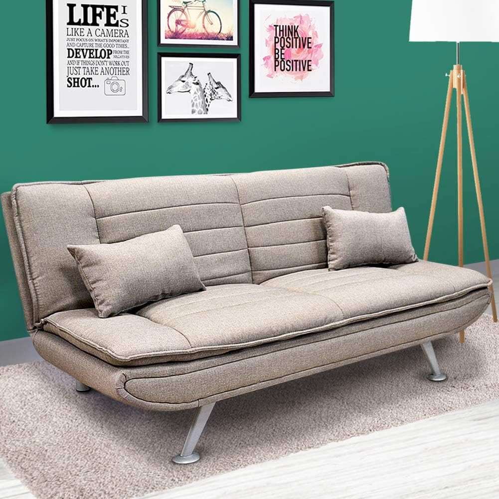 Arredamento Bakaji Divano Letto Ginevra Clic Clac 3 Posti Struttura In Legno Rivestimento In Tessuto Trapuntato Imbottito Piedini In Metallo Con 2 Cuscini Dimensione 183 X 88 X 82 Cm Grigio Casa