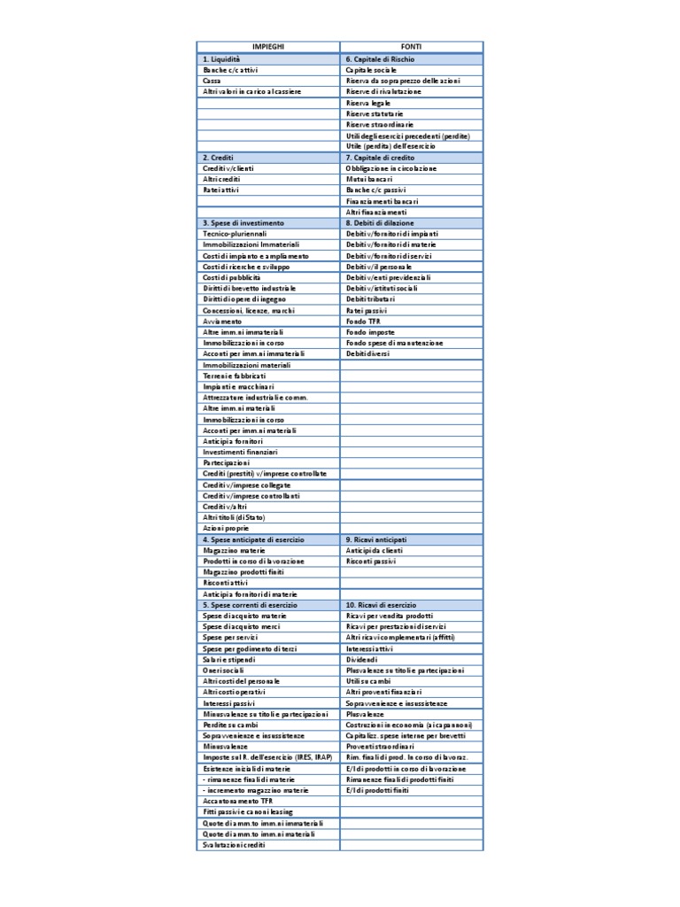 Collocazione Voci Nel Bilancio D Esercizio In Sintesi Docsity