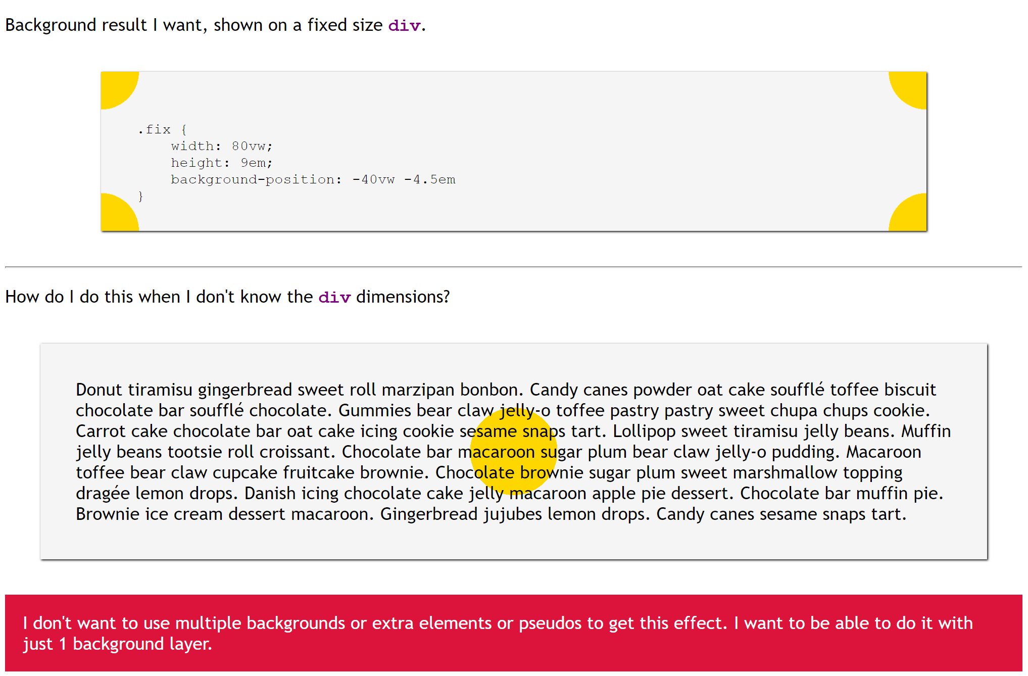 Ana Tudor On Twitter Dumb Css Question Position Background The Size Of Element It S Applied On Such That 50 50 Point Of Background Coincides With 0 0 Point Of Element How
