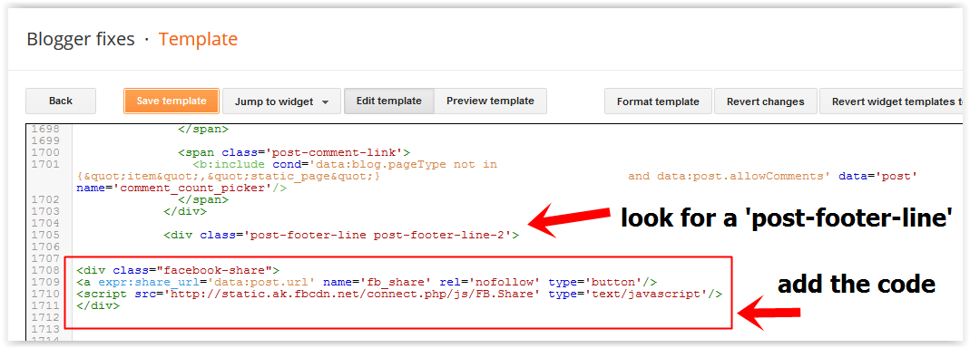 Blogger Fixes Add Facebook Share Button To Blogger Blog Post