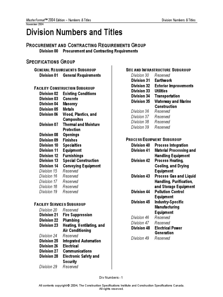 Solved 26 Master Format Specifications Are Divided Into Chegg Com
