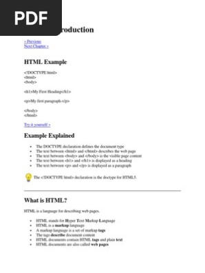 Introduction To Html W3school Html Element Html