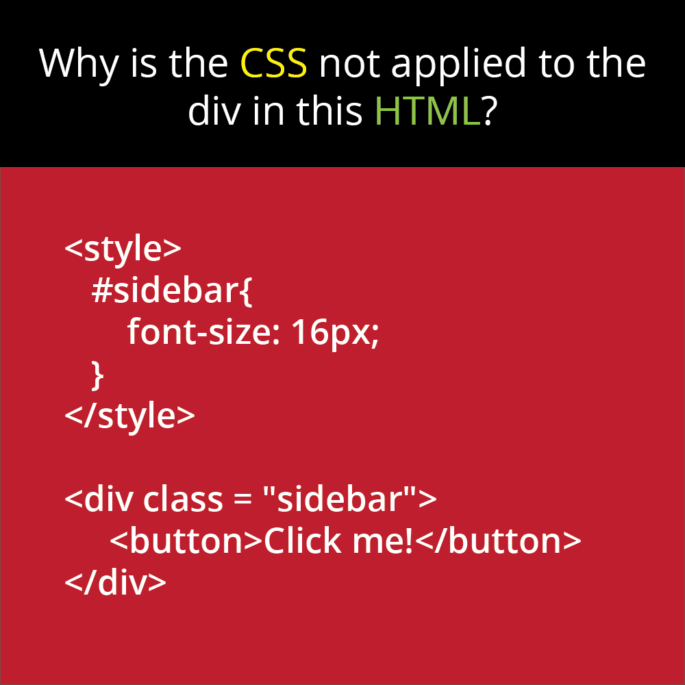 Pirple On Twitter Why Is The Css Not Applied To The Div In This Html Css3 Css Html Frontend Dev Webdev Pirple Learntocode Coding Code Https T Co Uxvbfnlwms