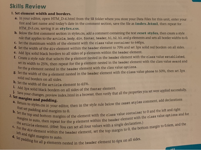 Solved Skills Review 1 Set Element Width And Borders A Chegg Com