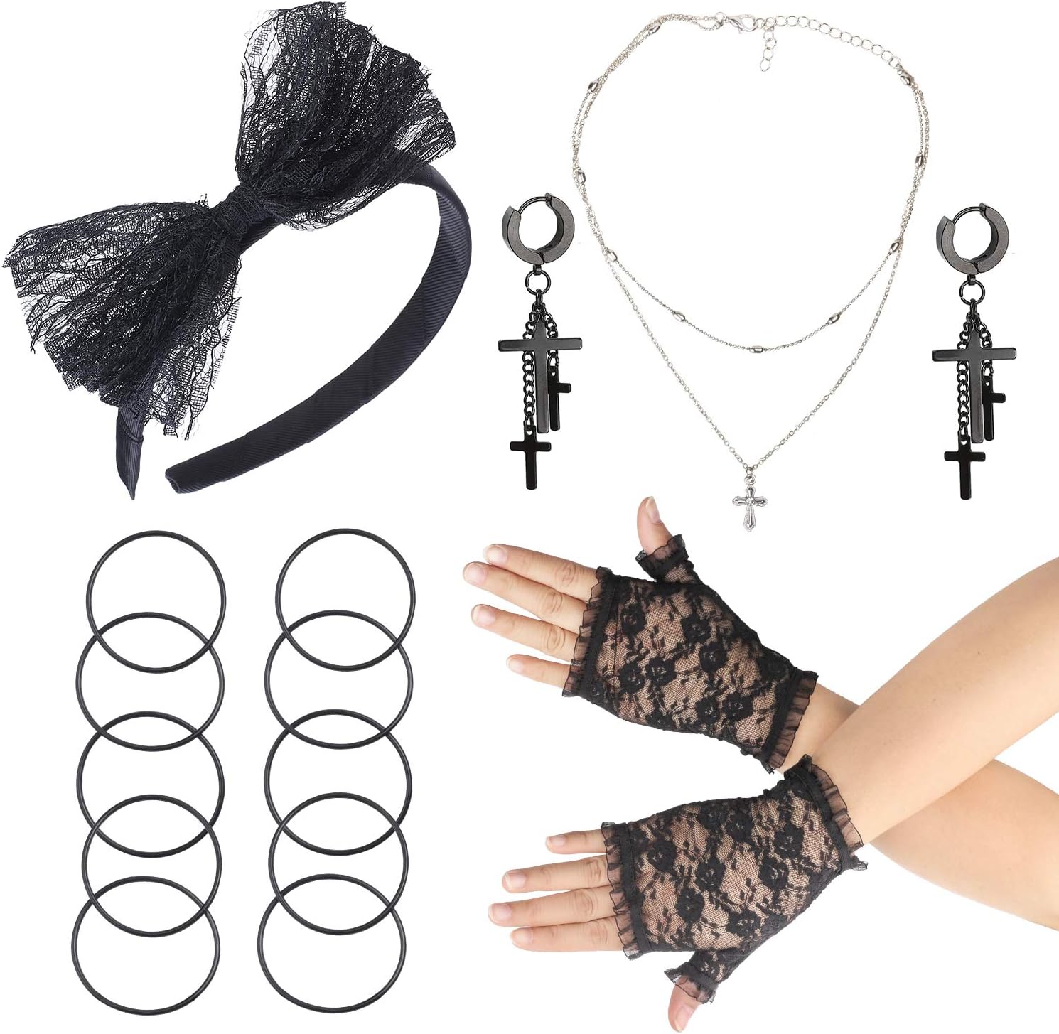 Beelittle 80s Party Pop Diva Accessori Per Costumi Pizzo Orecchini A Fascia Guanti Collana Bracciale Per Party Anni 80 Halloween Fancy Dress Madonna Nero2 Amazon It Giochi E Giocattoli