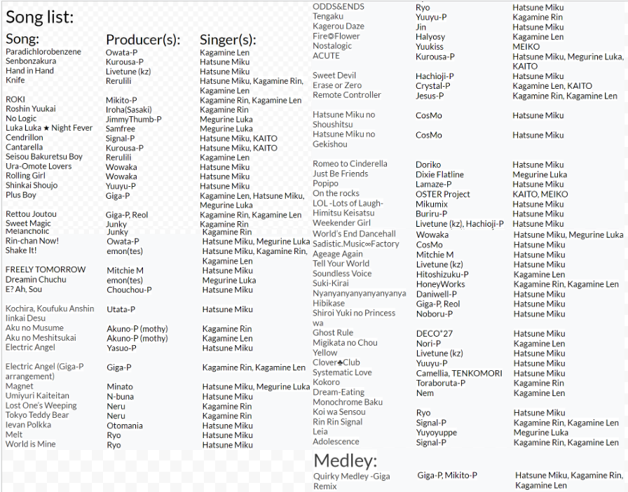 Project Diva Dance X Song List Fandom