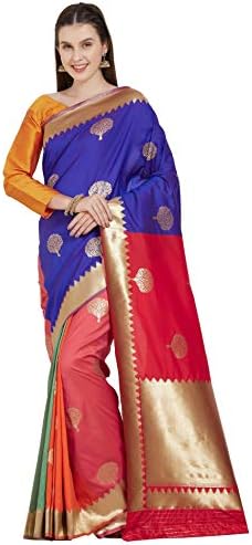 Viva N Diva Sarees For Women S Kanchivaram Silk Multi Color Woven Saree With Un Stiched Blouse Piece Free Size Amazon Sg Fashion