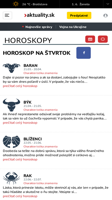 Aktuálne horoskopy pre všetky znamenia zverokruhu.