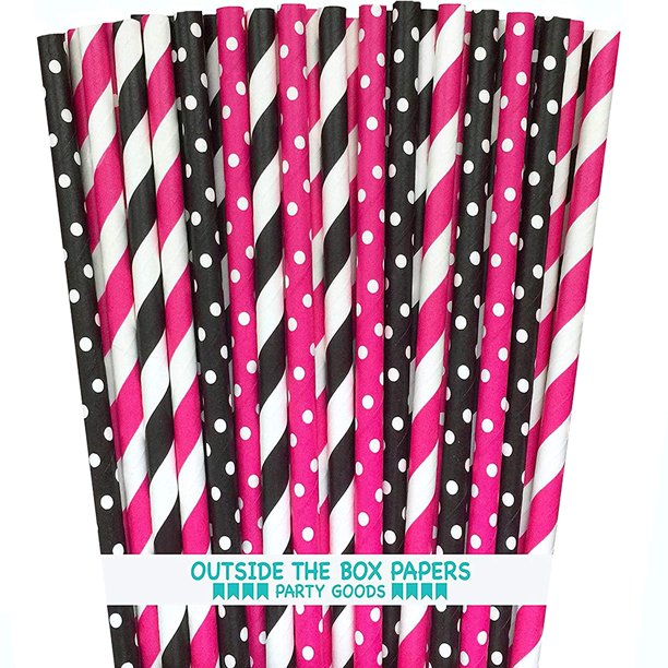 Diva Theme Stripe And Polka Dot Paper Straws 7 75 Inches 100 Pack Hot Pink Black White Walmart Com Walmart Com