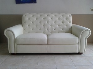 Divano Chesterfield 2 Posti Nuovo In Vera Pelle Originale Inglese Color Bianco