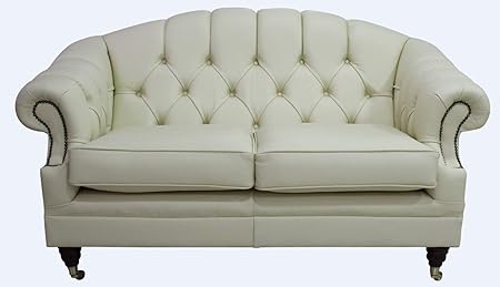 Divano Chesterfield 2 Posti Nuovo Originale Inglese Vintage In Vera Pelle Color Avorio