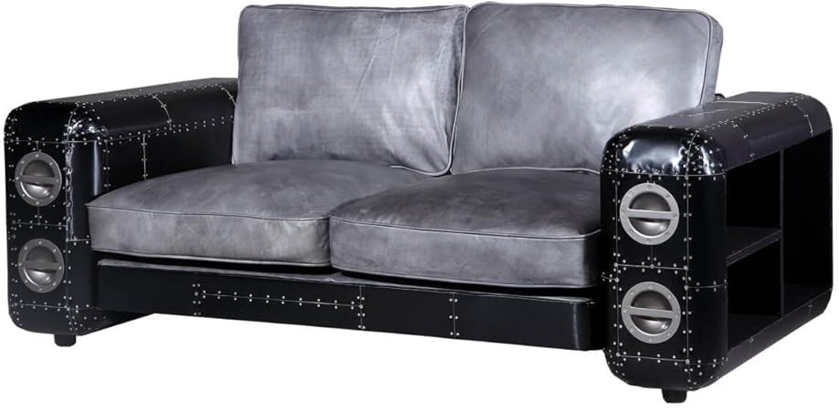 Divano A 2 Posti In Vera Pelle Con Legno Di Acacia Nero