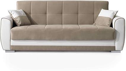 Vera Divano 3 Posti Contenitore Trasformabile Letto Ecopelle Bianca Tessuto Nocciola Amazon It Casa E Cucina
