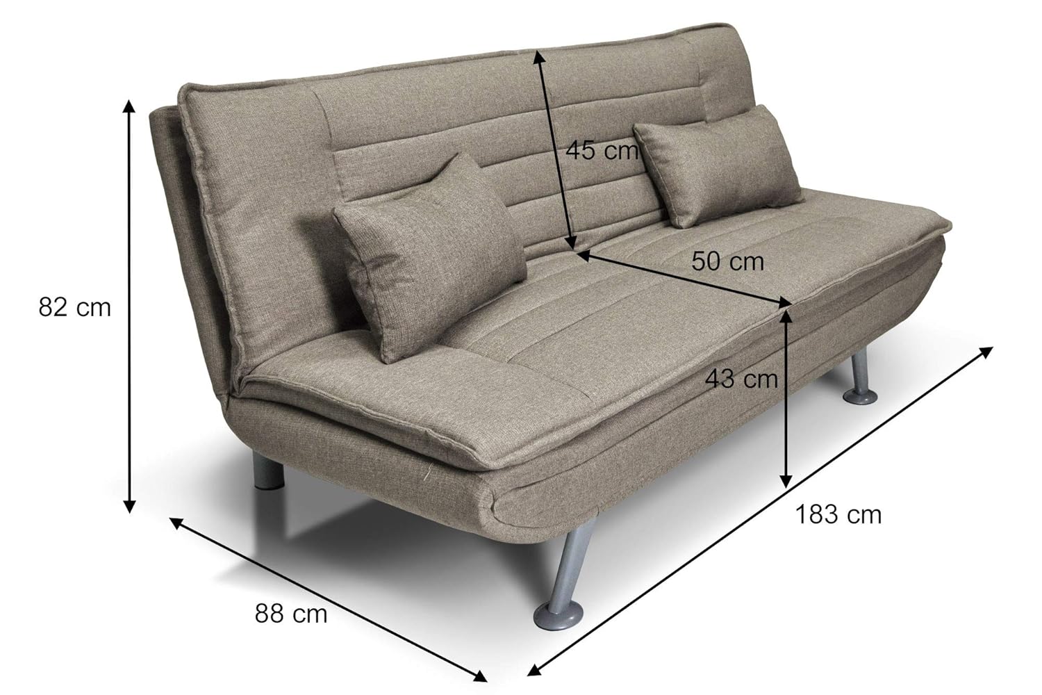Divano Letto Ginevra Clic Clac 3 Posti Tessuto Imbottito Metallo Cuscini Tortora Bakaji