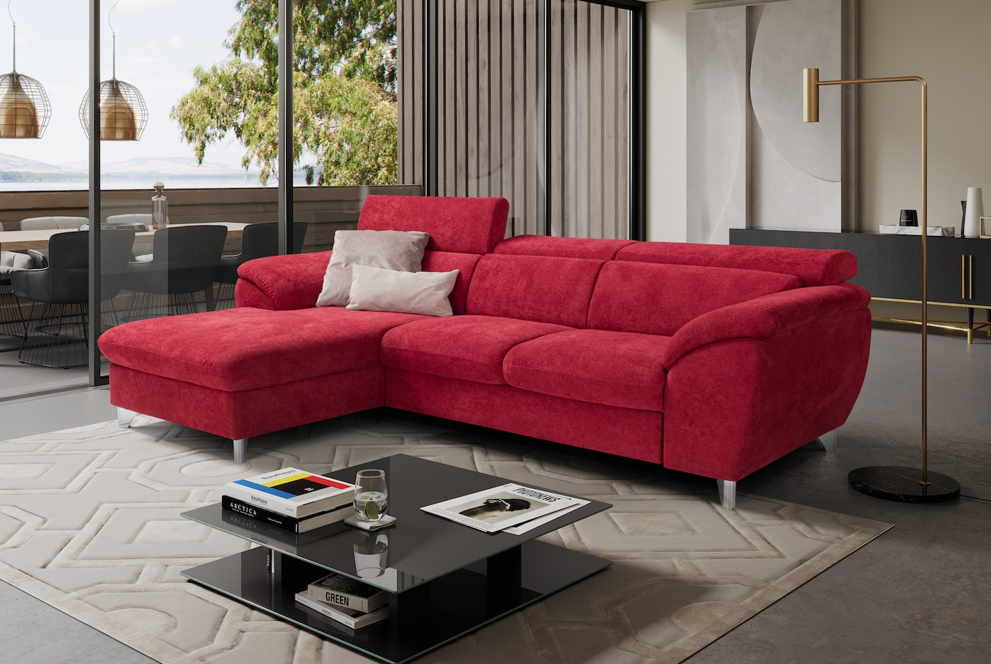 Divano Letto Penisola Da 230 Cm Con Pouf Estraibile E Schienale Alto