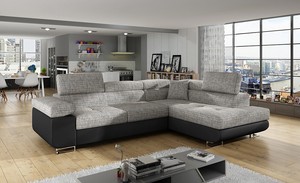 Divano Letto Angolare Panoramico E Reversibile In Tessuto E Similpelle Bianco E Grigio Azelma Ecopelle Design Nero Bianco Divano 4 E Piu Posti Camera Da Letto Divani Angolari Homelook