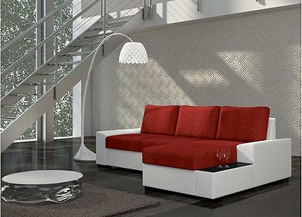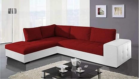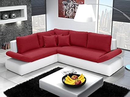 Justhome Paris Divano Angolare Divano Letto Finta Pelle In Tessuto Lxlxa 212x282x88 Cm Bianco Rosso Penisola A Sinistra Amazon It Casa E Cucina