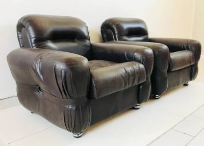 Coppia Di Poltrone In Pelle Modello Piumotto Prodotte Da Busnelli Anni 70 Italo900