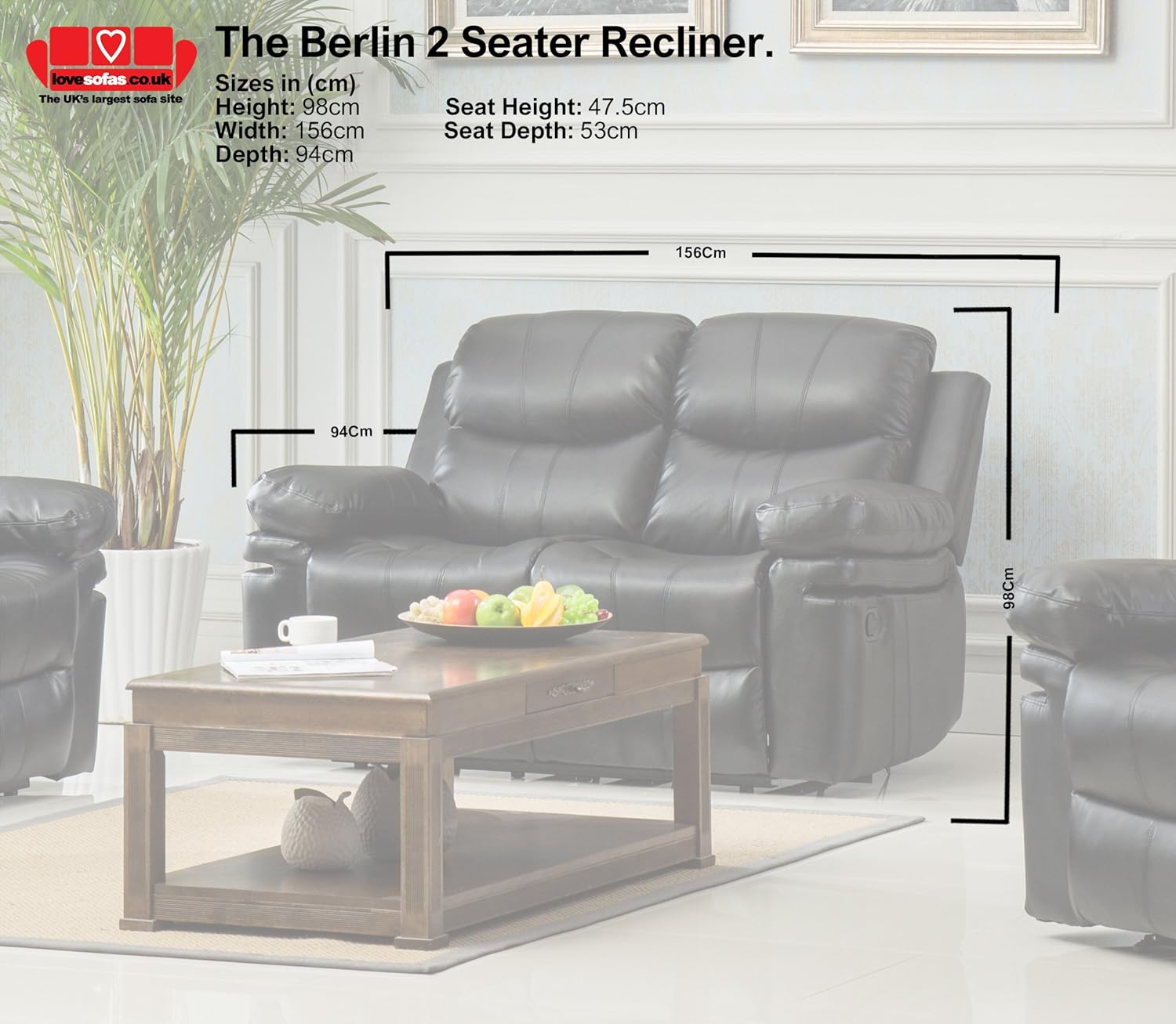 Lovesofas New Elettrico Reclinabile Divano A 2 Posti Berlino Con Console Nero Amazon It Casa E Cucina