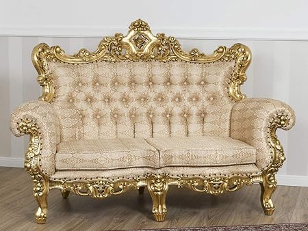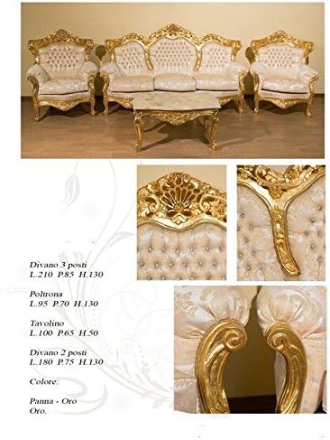 Lechic Divano 3 Posti Barocco Foglia Oro Massello Con 2 Poltrone E Tavolino Piano Marmo Amazon It Casa E Cucina