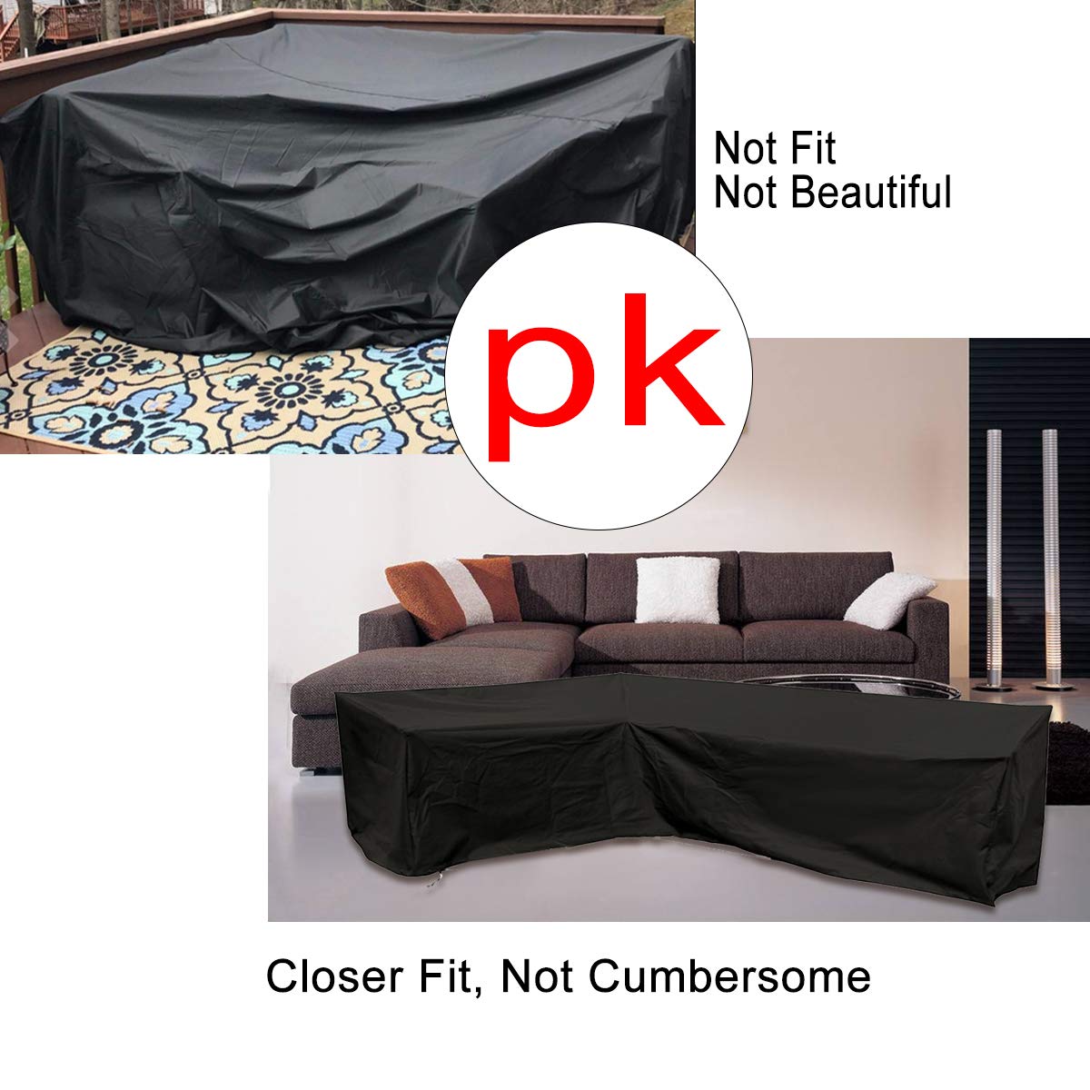 270 Cm Patio Mobili Divano Copertura Con Impermeabile E Antipolvere Per Protezione Solare E Spostare 200 Cm 90 Cm H Nero L R Essort Copridivano A Forma Di L Arredamento Coperture Per Divani