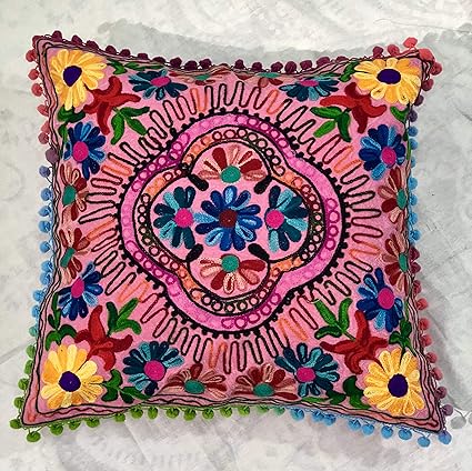 Copricuscino Indiano Suzani In Cotone Con Decorazione Floreale Stile Boho Chic E Bohemien Per Divano Copricuscino Realizzato A Mano Ricamato A Mano Con Paillette