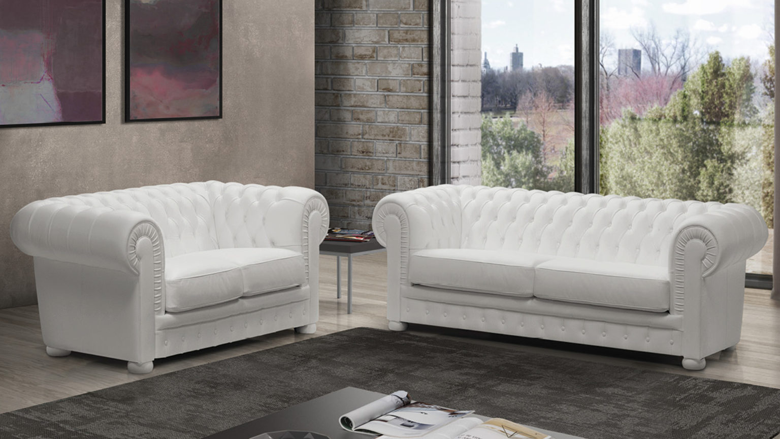 Divano Chester Bianco Divani Capitonne Vera Pelle Gallese
