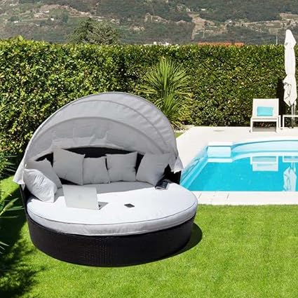 Chaise Longue Rotondo Divano Letto Da Giardino Palmas In Rattan Sintetico Grigio 180 X 210 H 192