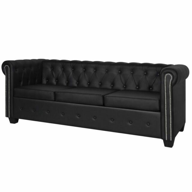 Classic 3 Seater Sofa Button Tufted Pu Leather Black Living Room Chesterfield For Sale Online Ebay