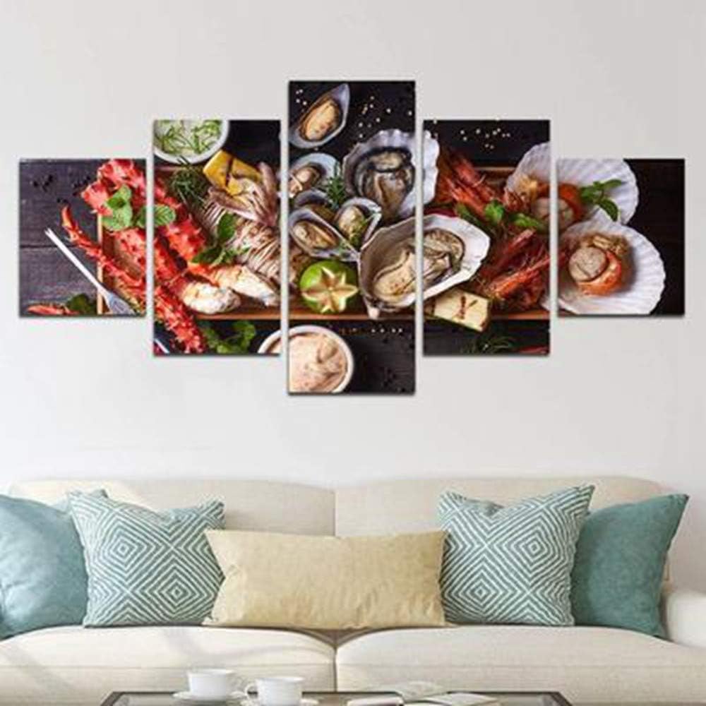 Amohart Stampe Su Tela 5 Pezzi Frutti Di Mare Pasto Cibo Ostrica Fresca Aragosta Arte Della Parete Ristorante Cucina Decorazioni Per La Casa Opere D Arte Dipinti Su Tela Telaio Amazon It Casa E