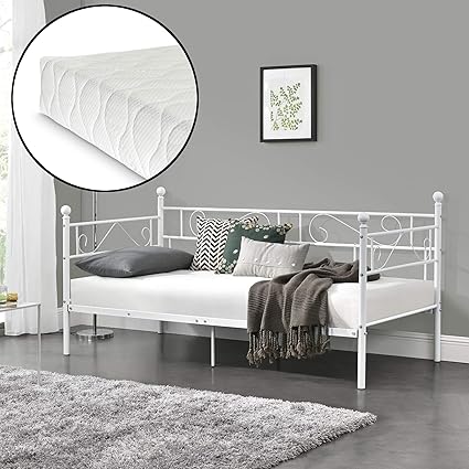 En Casa Divano Letto Metallo Con Materasso 200 X 100 Cm Sofa Singolo Design Incluso Rete A Doghe Bianco Amazon It Casa E Cucina