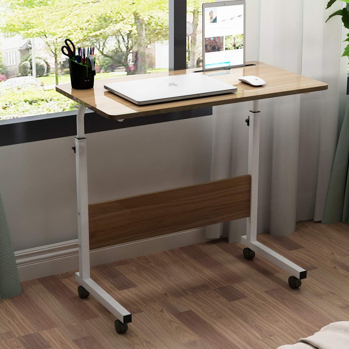 Pigro Comodino Scrivania Da Tavolo For Divano Letto Color D Size 80x40cm Altezza Regolabile Laptop Desk Carrello Portatile Vassoio Tavolino Con 2 Ripiani Di Stoccaggio E 4 Ruote Supporti Per