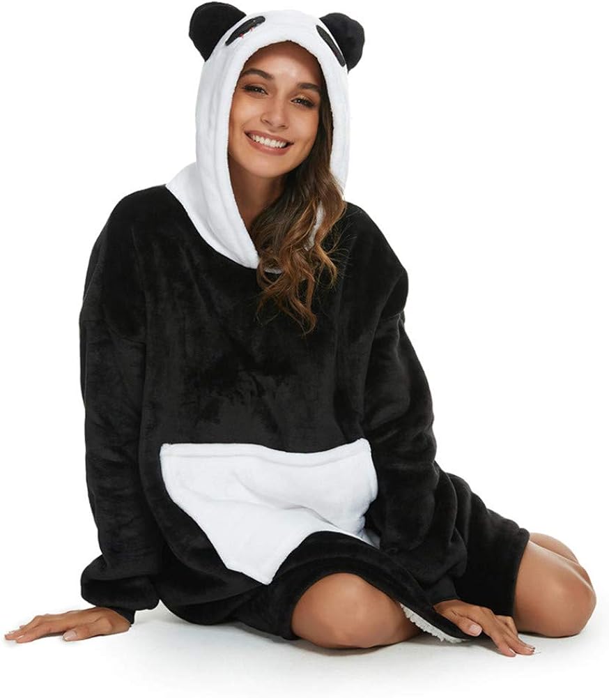 Coperta Con Cappuccio Panda Felpone Con Maniche Oversize Unisex Plaid Con Tasca Felpa Indossabile Per Divano Tv Casa Felpe Felpe Con Cappuccio