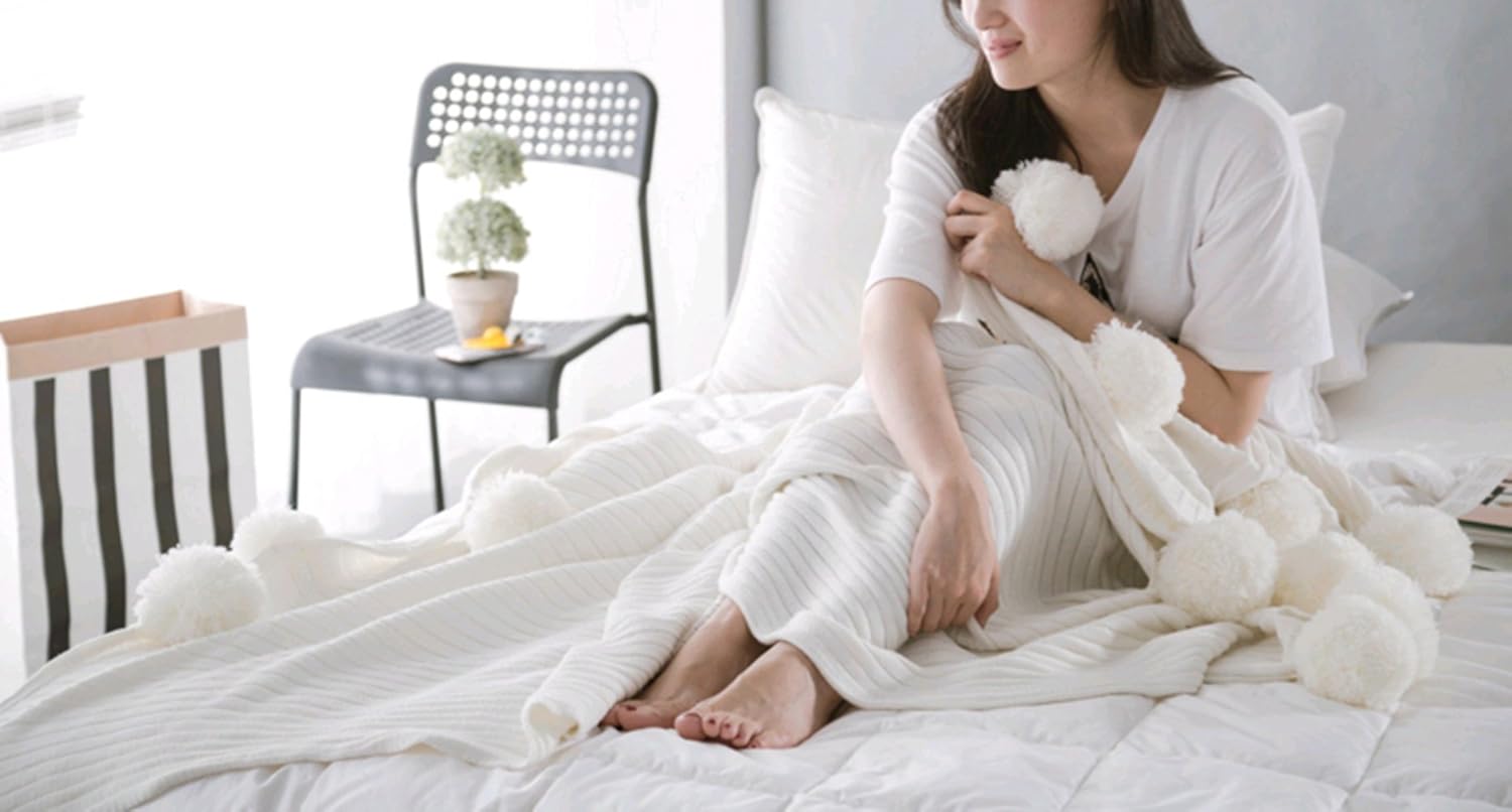 Coperte E Trapunte Icegrey Coperta Plaid Con Pompon Fatto A Mano A Maglia Tv Copriletto Per Letto Divano Letto Bianco 90x90 Cm Casa E Cucina Bandoska Pl