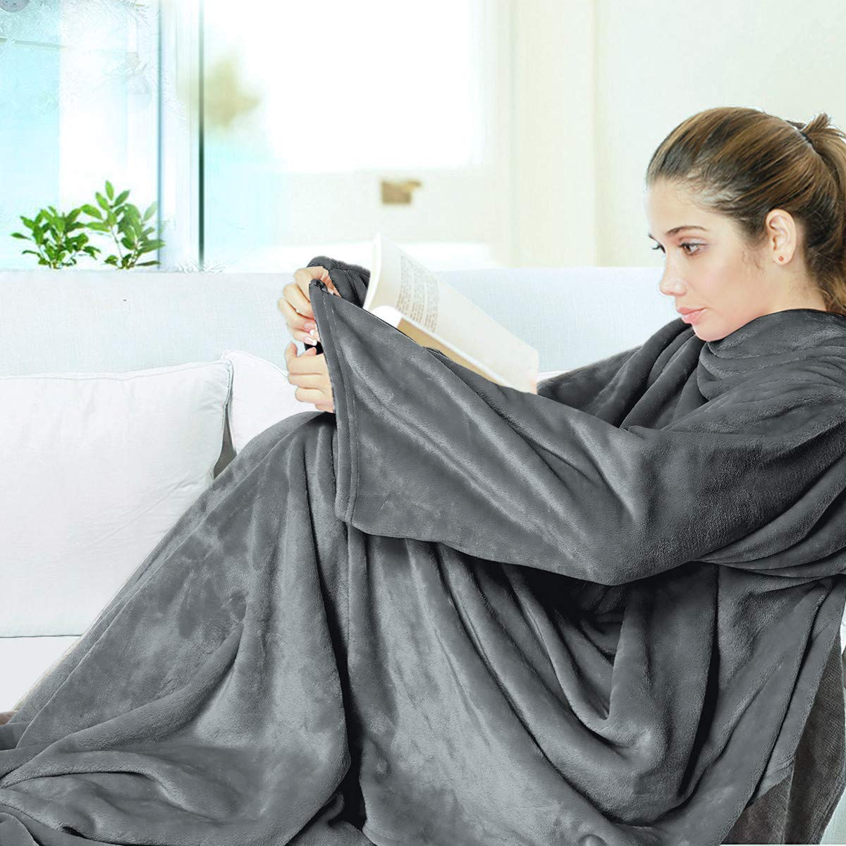 Grigio Osaloe Coperta Morbido Con Maniche E Tasca Per I Piedi Coperta Tv Soffice In Microfibra Di Flanella Per Divano E Letto 200 X 180 Cm Escuelasoulsurf Cl