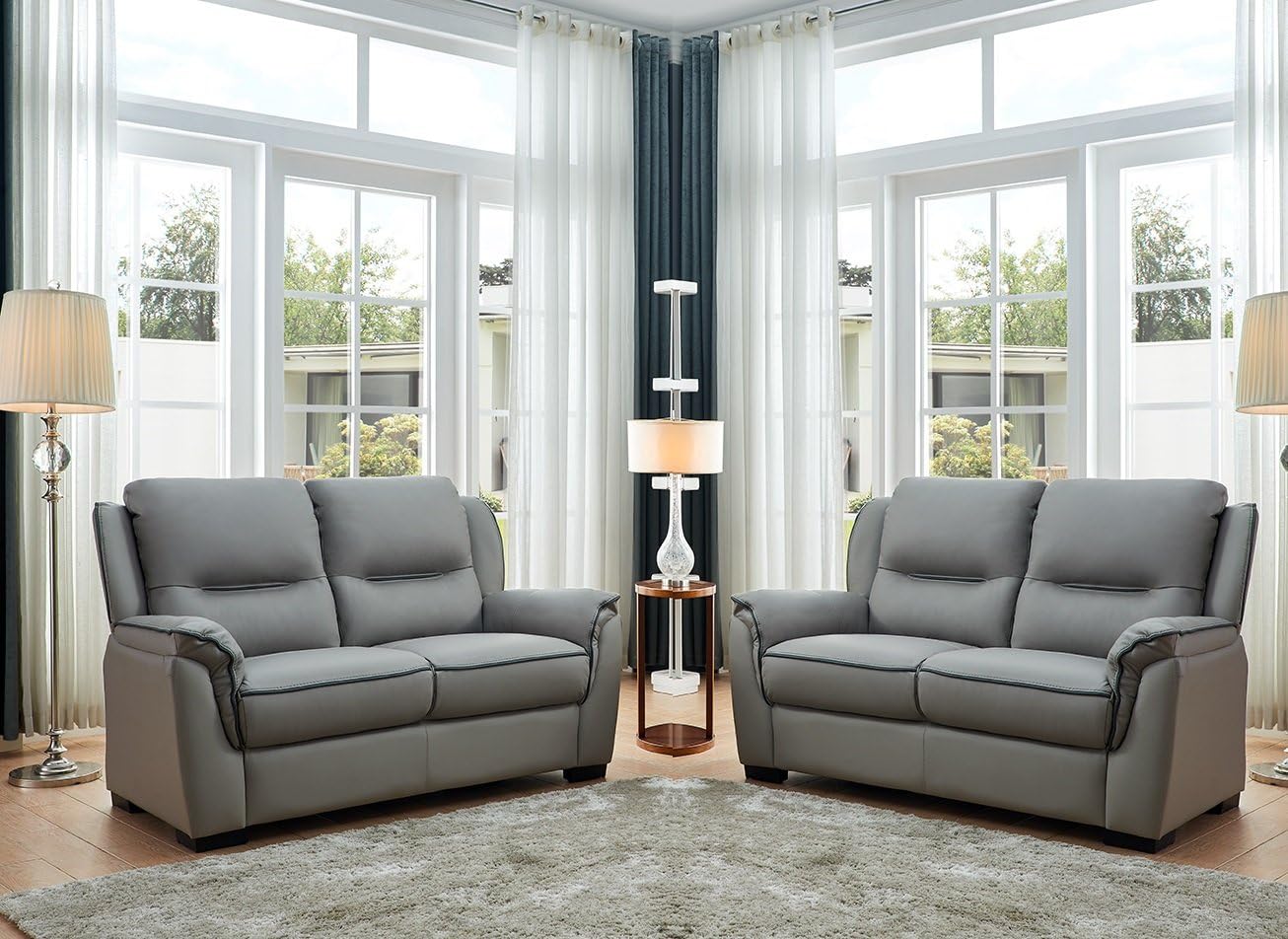 Divano A 3 Posti E Due Poltrone New York Con Braccioli In Vera Pelle Di Qualita Colore Grigio Pelle Grey 2 2 Amazon It Casa E Cucina