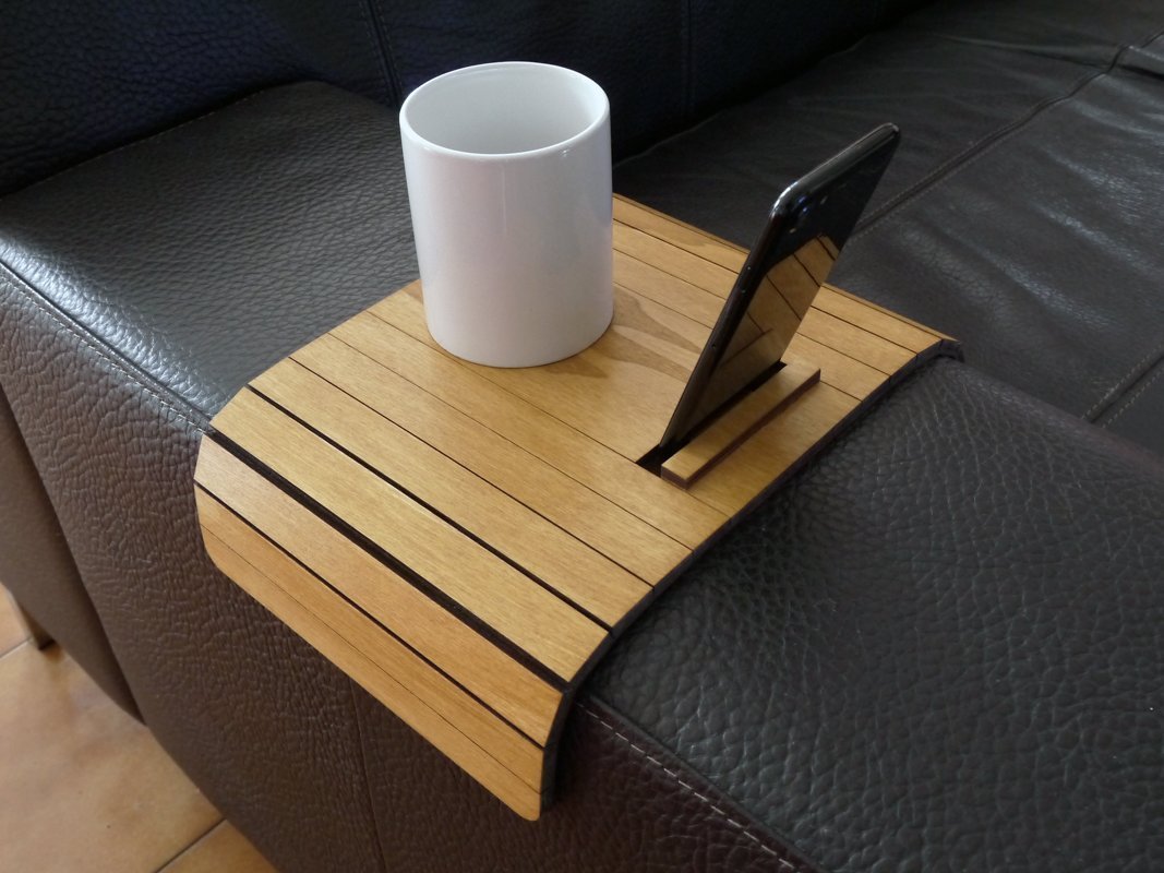 Tavolino Lato Divano Per Salotto Con Supporto Smartphone In Molti Colori Come Noce Chiaro Tavolo Laterale Da Bracciolo Poltrona In Legno Tagliato A Laser Tavolini Di Design Moderno Tavoli Designer Mobili Casa