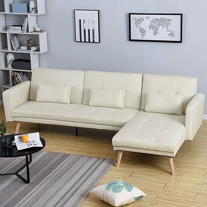 Storeinuk Divano Letto A 3 Posti A Forma Di L Angolare Lato Destro E Sinistro Tessuto Di Lino Crema 3 Posti Amazon It Casa E Cucina