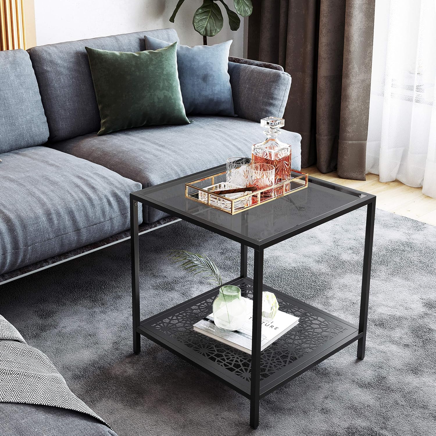 43 4 X 43 4 X 50 7 Cm Decorativo Per Soggiorno Nero Lgt01bk Tavolino A