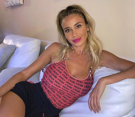 Diletta leotta è distesa su di un bellissimo divano con indosso dell intimo che lascia scoperte le gambe ed esalta il suo florido décolleté.