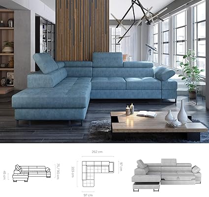 Bmf Tunis Modern Angolare Divano Letto Con Funzione Relax In Ecopelle O Tessuto Lato Sinistro 262 Cm X 223 Cm Basic Amazon It Casa E Cucina