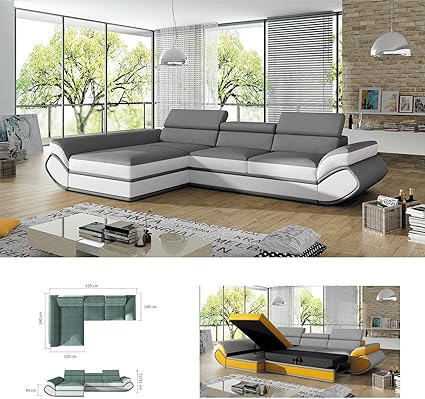 Bmf Genesis Mini Grigio Bianco Moderno Divano Letto Ad Angolo In Ecopelle O Tessuto Qualsiasi Colore Lato Sinistro 320 Cm X 190 Cm Amazon It Casa E Cucina