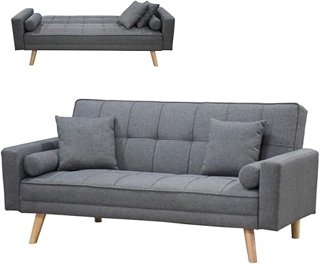 Bakaji Divano Letto Clic Clac 3 Posti Struttura In Legno Rivestimento Con Braccioli In Tessuto Trapuntato