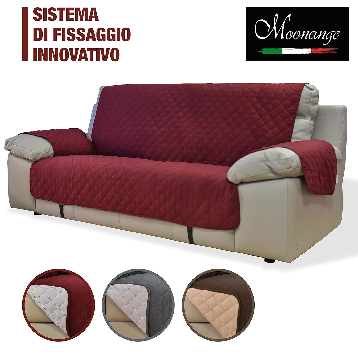 Bordeaux Moonange Copridivano 3 Posti Reversibile Impermeabile Tre Colori Antiscivolo Antimacchia Antigraffio Cani Gatti Grande Copertura Protezione Divano In Pelle 295 Cm Seduta 165 Cm Soggiorno Accessori Per Poltrone E Divani